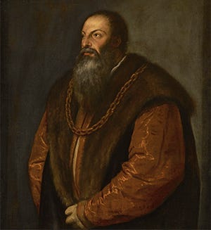 “The Renaissance writer Pietro Aretino often boasted of his aristocratic lineage, which was, of course, a fiction, since he was actually the son of a shoemaker. When an enemy of his finally revealed the embarrassing truth, word quickly spread, and soon all of Venice was aghast at Aretino’s lies.”