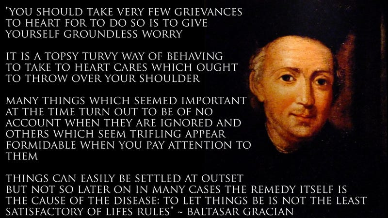 Philosopher Baltasar Gracian articulates why we should not take most thing’s to heart.