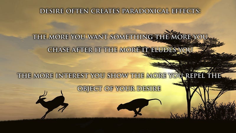 This psychological phenomenon can be demonstrated in relationships; most men and women will have experienced this at least once as a lesson learnt on to how to cultivate desire and attraction. We learn in nearly any social setting in life that coming on too strong, too aggressive and exhibiting excessive desire, or “thirst”, as some generations may call it, often repels people.